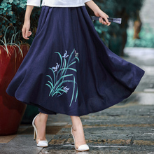 印花亚麻春季半身裙中长款连衣裙 文艺复古民族风女生a字半身裙子