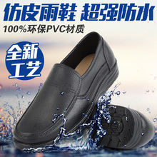 雨鞋男低帮短筒防水鞋胶鞋仿皮鞋厚底防滑胶鞋厨房工作鞋厨师鞋男