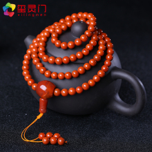 玺灵门川料南红玛瑙手链男女款满肉柿子红三圈108颗佛珠手串饰品