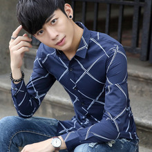2016秋季男士流行韩版长袖衬衫修身青年潮男装时尚寸衫长袖衬衣