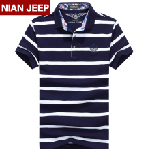 NIAN JEEP纯棉短袖t恤男 吉普盾翻领纯棉条纹男士半袖polo衫