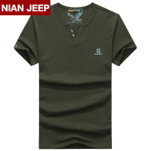 夏季NIAN JEEP吉普盾男士V领短袖T恤大码男半袖吉普体恤衫棉