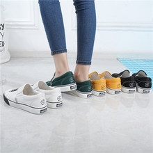 韩国帆布鞋女低帮一脚蹬乐福鞋女懒人鞋套脚休闲鞋女厚底平跟女鞋