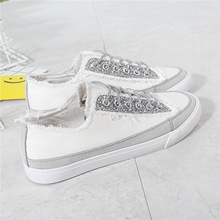 夏季新款小白鞋百搭帆布鞋女原宿潮鞋亮片板鞋女平底学生韩版单鞋