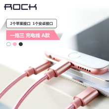 ROCK一拖三数据线iPhone6苹果安卓二合一5S/6S手机充电线1.2m加长