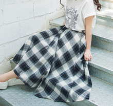2017韩版新款大格子棉麻半身裙格纹大摆长裙中长款修身a字裙夏装