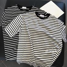 小耳实拍 经典条纹 胖mm柔软棉质女大版大码宽松短袖打底t恤