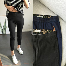 包邮夏 薄胖mm柔软高弹 高腰女大码黑紧身外穿牛仔九分打底小脚裤