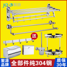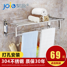 聚源毛巾架浴室挂件不锈钢304置物架卫生间活动折叠浴巾架打孔