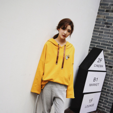 春装新款个性徽章宽版字母大袖子刺绣女生带帽套头卫衣女上衣帽衫