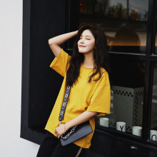 2017春夏新品 纯棉宽松休闲百搭纯色光板中长款短袖t恤内搭打底衫