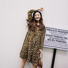 韩系甜美文艺小清新高腰显瘦长袖碎花雪纺连衣裙女收腰内搭打底裙