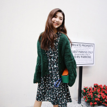 2017春季新款韩版混色大袖子长款毛衣开衫外套女宽松学生粗毛线潮
