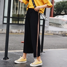 2017夏装新款韩版高腰显瘦直筒阔腿裤侧边拼接一条休闲九分裤