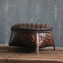 日式复古竹编四脚 收纳盒 竹编收纳 收纳篮子 筐 工艺品 竹制品