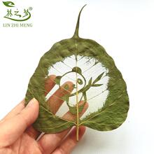 林之梦中国大熊猫图菩提叶雕装饰画亚克力框田园风出国送老外包邮