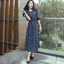 2017新款秋季女装印花秋装连衣裙韩版修身七分袖淑女长裙子a字裙