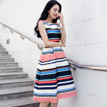 2017夏装新款女装针织印花连衣裙夏季短袖修身两件套装裙A字裙子