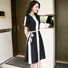 2017新款夏季女装短袖连衣裙女夏装修身两件套装裙大摆裙长裙子潮