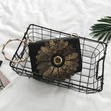 2017新款韩版潮女包夏季百搭链条包圆环手拿包单肩斜挎花朵小包包