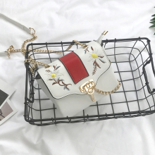 2017新款女包韩版刺绣小方包时尚锁扣包百搭链条单肩斜挎包链条包