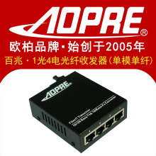 AOPRE 百兆1光4电光纤收发器 单多模单纤光电转换器 一光四电监控