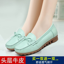 豆豆鞋女真皮春季单鞋女软底牛皮蝴蝶结平跟平底护士孕妇妈妈鞋