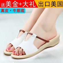夏季新品凉拖鞋女潮坡跟平底真皮一字拖防滑妈妈凉鞋孕妇大码沙滩