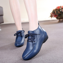 秋冬真皮平底棉鞋中老年妈妈鞋女鞋加绒短靴单靴系带二棉高帮皮鞋