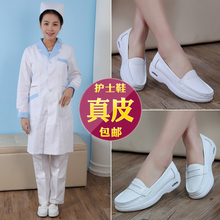 圣诗丹特真皮白色护士鞋防滑坡跟工作鞋美容院单鞋软牛筋浅口套脚