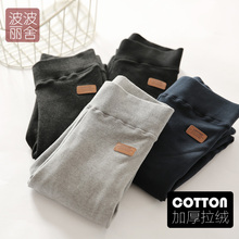 韩版新款纯棉拉绒高腰皮标踩脚女打底裤九分裤加绒高弹力女装裤子