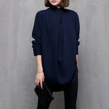2017春季韩版新款女装宽松中长款长袖百搭打底衫时尚衬衫雪纺衫