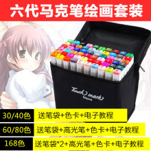 六代马克笔套装touch mark正品60色80色油性双头白杆学生动漫绘画