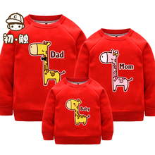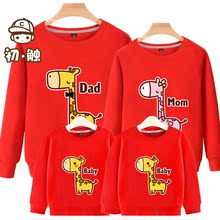 新年亲子装春装2017春装一家三口圆领加绒红色卫衣全家庭装春秋款