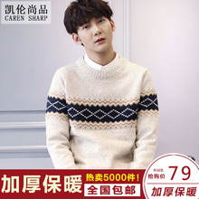 羊毛衫男圆领加厚韩版学生青年2016新款秋冬套头修身小清新毛衣男