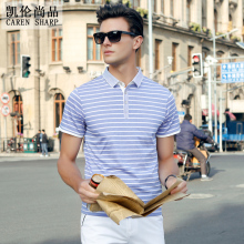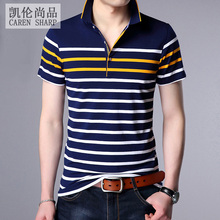Polo衫男短袖t恤 翻领韩版夏季条纹修身有领男装体恤半袖衣服男潮