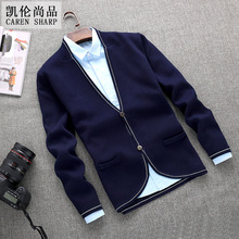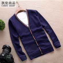 秋季新款针织开衫男 青年韩版长袖针织外套薄款V领毛衣开衫男