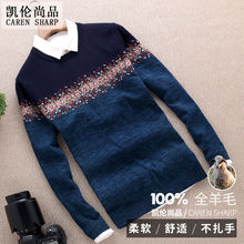 羊毛衫男v领韩版冬季青年打底衫修身套头鸡心领纯羊毛衫毛衣男潮