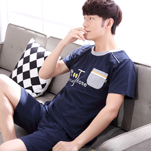 睡衣男夏季纯棉短袖薄款青少年加肥加大码夏天男士时尚家居服套装