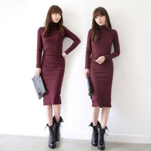 包邮2017春秋季新品韩版修身女式套头高领连衣裙纯棉长袖长裙