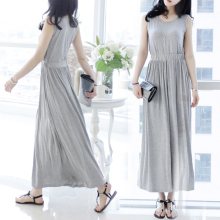 2017年新品春夏韩版莫代尔背心长裙 修身纯色连衣裙夏季沙滩裙