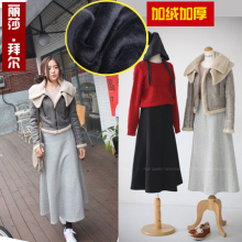 2017新品秋冬新款韩版加厚加绒半身裙 女装短裙 纯棉松紧腰裙包邮