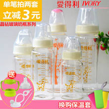 爱得利婴儿晶钻高耐热防爆标口/宽口径玻璃奶瓶120ml-300ml送吸管