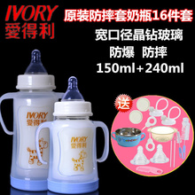 爱得利晶钻玻璃奶瓶可带吸管防摔套宽口径新生儿宝宝婴儿正品包邮