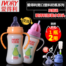 爱得利带吸管带手柄 宽口径/标口径PP防摔宝宝奶瓶不含双酚A 包邮
