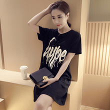 2016夏季新款韩版女装大码印花字母圆领短袖t恤中长款连衣裙女装