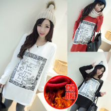 2016秋冬装新款韩版上衣女装长袖打底衫女装大码宽松加绒加厚T恤