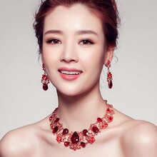 新娘饰品结婚纱首饰韩式水钻红色项链耳环套装婚庆礼服头饰配饰品