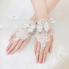 新娘手套花边蕾丝防晒白色韩式蝴蝶短款全指精美造型婚纱礼服配饰