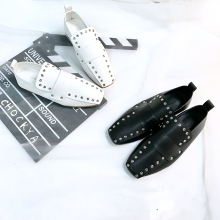 欧洲站2017早春新款方头豆豆鞋女休闲铆钉鞋平底单鞋懒人乐福鞋女